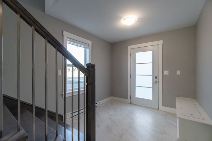 Entering this newly-constructed above-grade single family home you are immediately drawn upstairs by the beautiful hardwood staircase. On the main floor you will find a large dining area attached to the beautiful modern kitchen with access to the back patio. In the kitchen you will find all the features expected in a modern development including stone countertops, stainless steel appliances, and a large walk-in pantry. Turning the corner you will find your half-bath and access to the large living area with a beautiful fireplace feature.